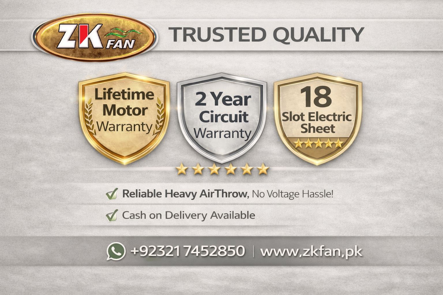 Enjoy reliable home delivery on all ZK Fans products within Pakistan. Shop now and experience top-quality service.Hurry up and shop now!
